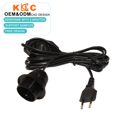 KUNCAN Black Euro 2 Pin Plug Vde Cable Gear Switch 303 E27 Lampholder Eu Salt Lamp Power Cord