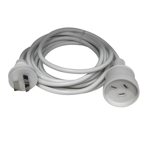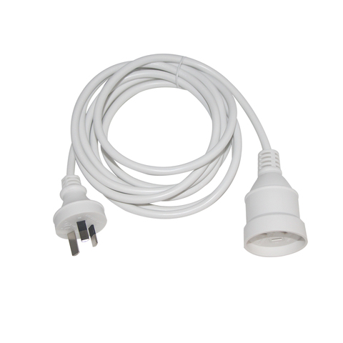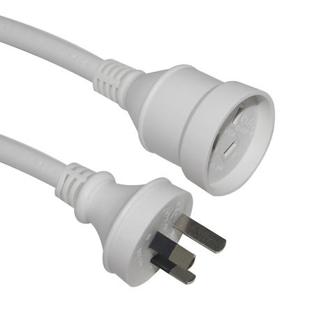 1.5m white PVC male female heavy duty DPU SAA approval 10A 250v Australia piggyback power cord